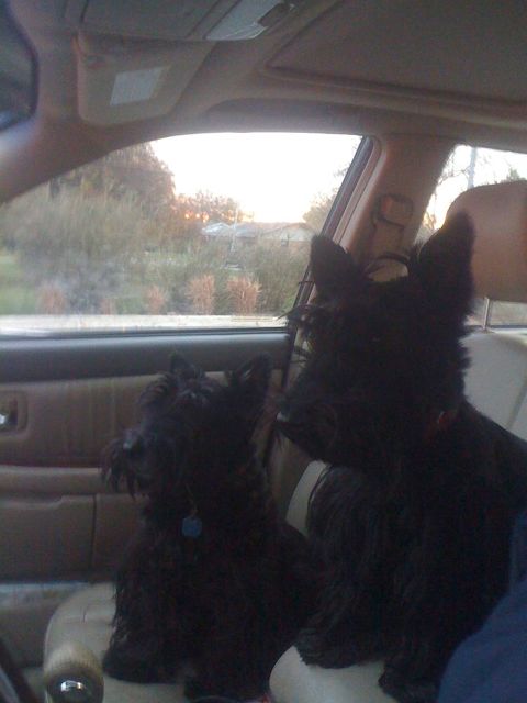 Angus Fala, and sister AinsleyMy picture is my sister Ainsley and me, on the passenger seat, heading to one of my many vet visits back in 2010. She just went for the rides and the inevitable trips through McDonalds.